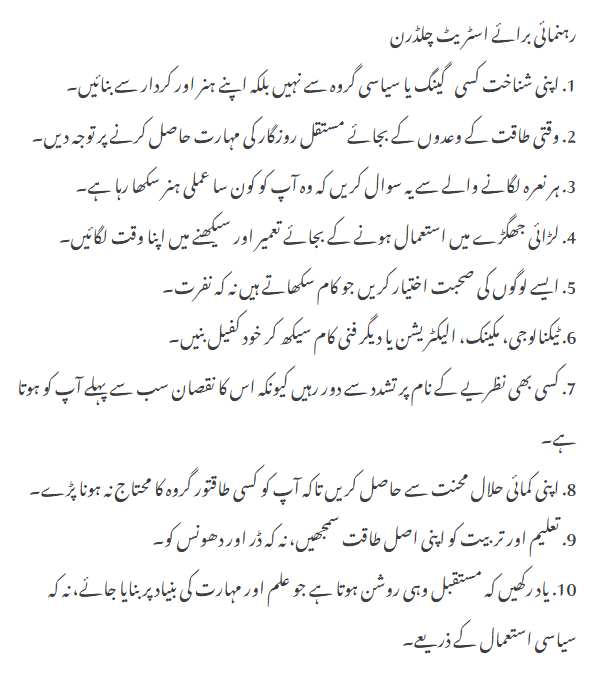 - Stay away from violence in the name of any ideology because you are the first to suffer.